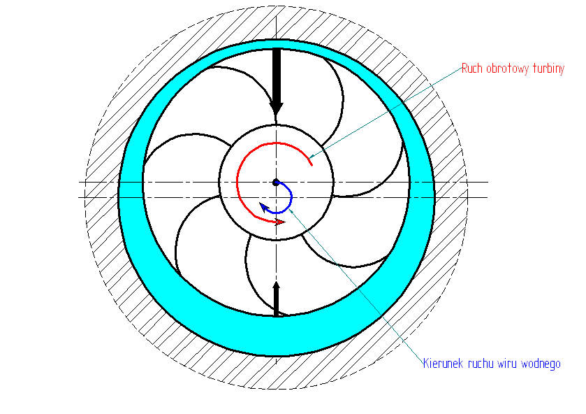 Sprawdzić obciąźenia przy których pojawia się zwiększona wartość drgań. Zrealizować wpuszczenie powietrza w przestrzeń pod koło wodne, ale nie na powierzchni komory lecz w obręb osi . Zmienić kształt krawędzi wylotowych łopatek koła wodnego. |